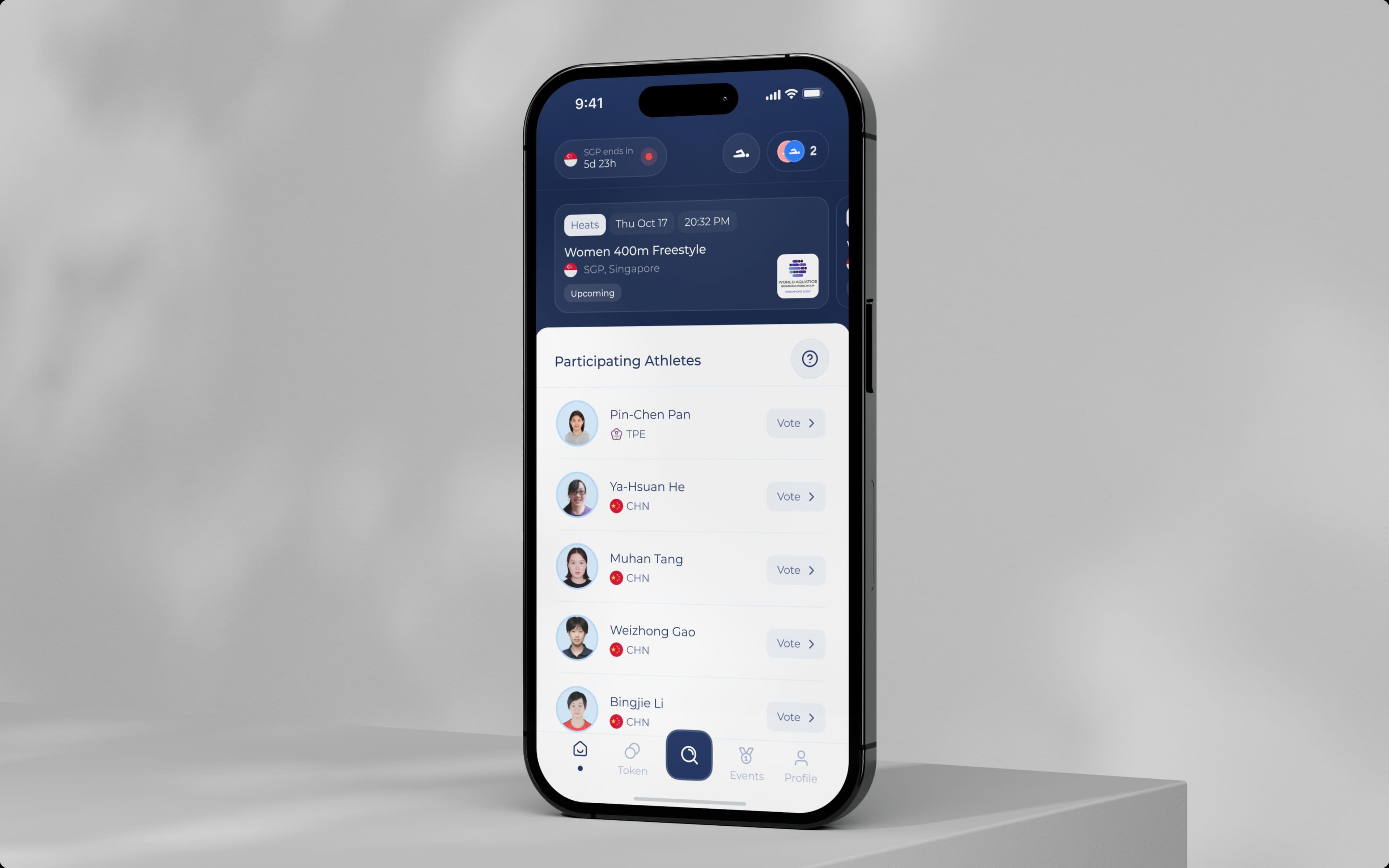 A blockchain-powered mobile platform that enhances fan interaction in aquatic sports through secure and transparent voting. Enables real-time participation in major international competitions, bridging fans and athletes directly.